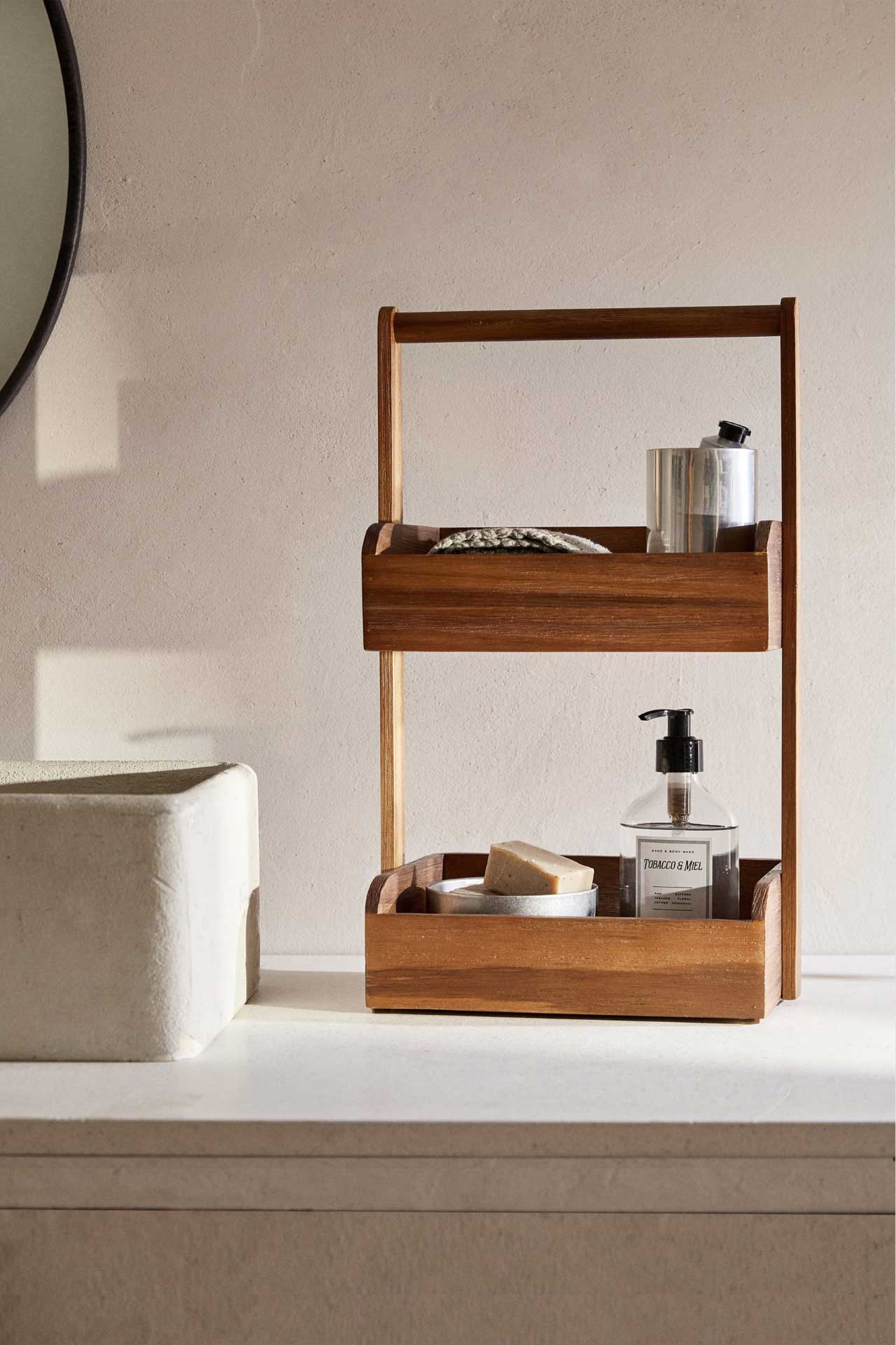 acacia wood is a popular choice in the bathroom and kitchen because of its water resistance, so we’ve used it to make this storage unit.